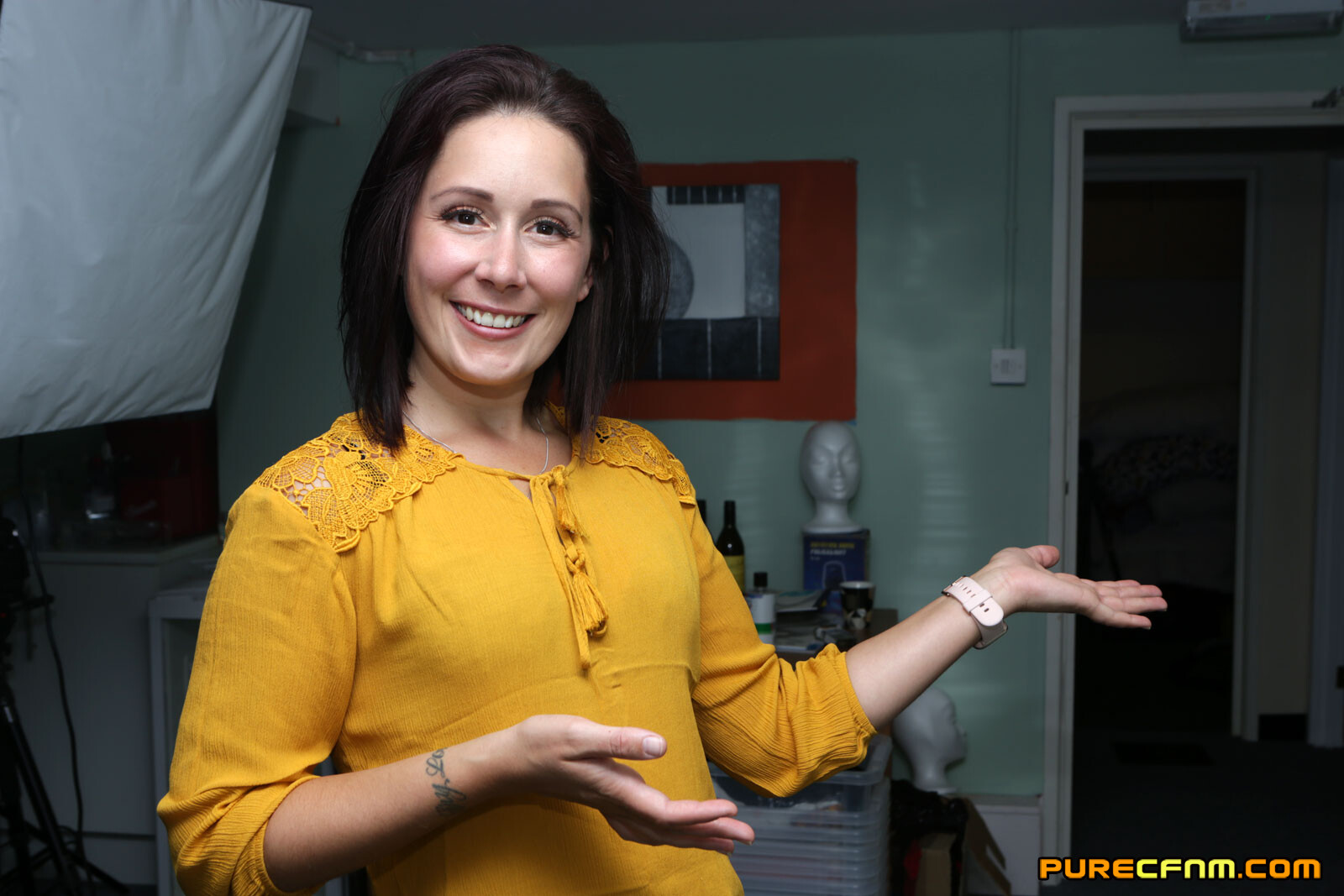 A new guy arrives at PureCFNM studios and is shown round by the female camera crew. His jaw drops open as he meets all of the stunning pornstars. They are all in their underwear or playing with themselves getting ready for their scene with him. Once on set the camera woman likes the look of this fresh meat and decides to join in. With 4 girls wanking him, he gets so excited that he cums, only to be told he has ejaculated too early and now has to do it all again for the main video!